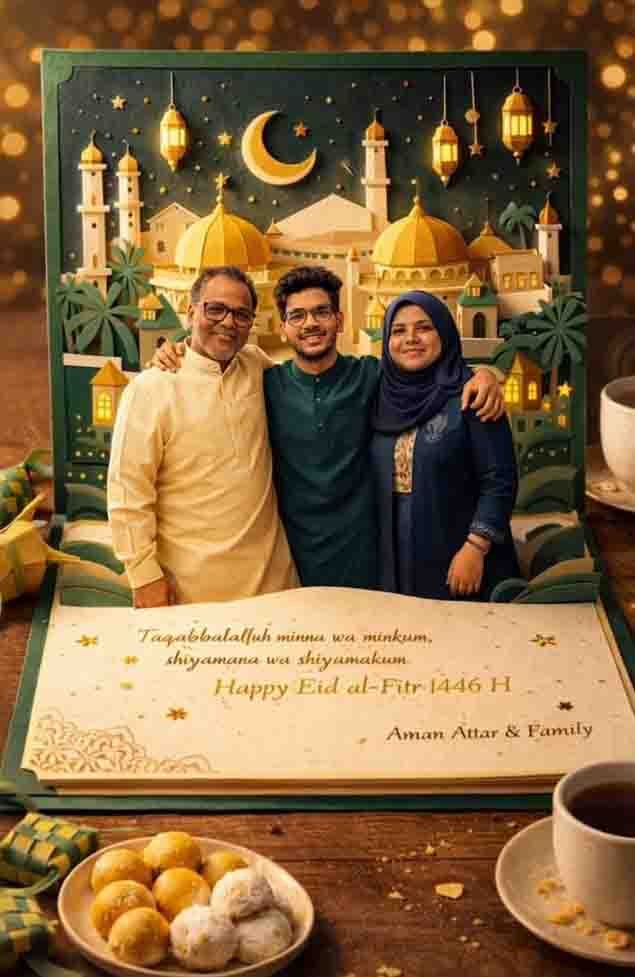 Is prompt ki madad se aap apni family ke saath Eid wala photo bana sakte ho.
